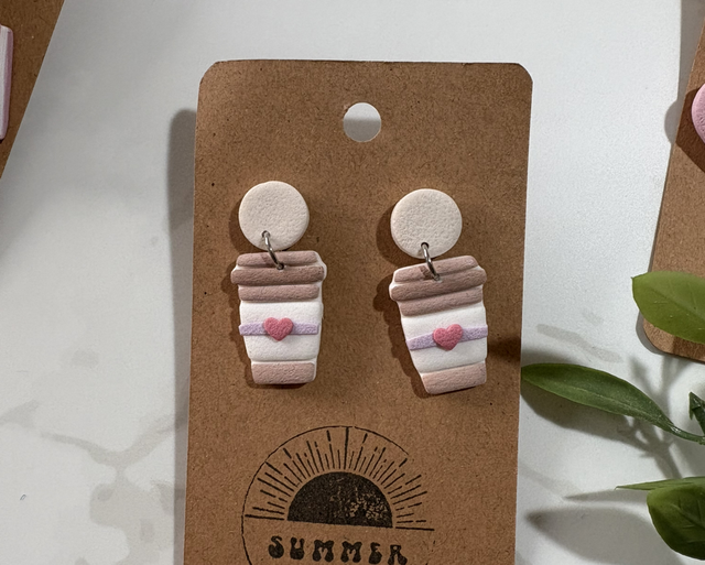 Handmade Beige and Gold clay Earrings